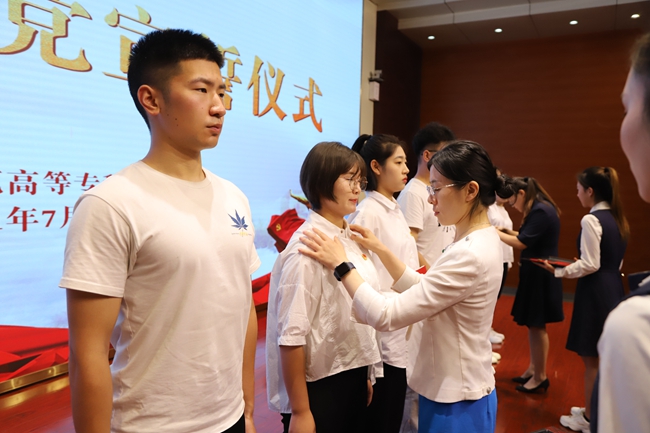 7月1日上午,我校在玖兴楼B108会议室举行新党员入党宣誓活动。校党委书记杨浩,党委委员、副校长顾强以及党委各职能部门负责人、各党总支书记、支部书记代表和各党总支新党员代表200余人参加了活动。