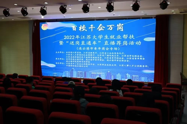 为落实中央“六稳”“六保”精神,切实做好高校毕业生就业服务工作,吸引更多高校毕业生来连、留连干事创业,更好地服务地方人才招引工作,切实做好2022届、2023届在连高校毕业生就业服务工作,5月19日下午,连云港团市委在我校大学生活动中心“云端”开启“百校千企万岗”2022年江苏大学生就业帮扶“送岗直通车”直播荐岗活动(连云港市青年商会专场)。