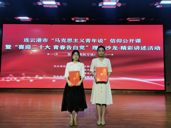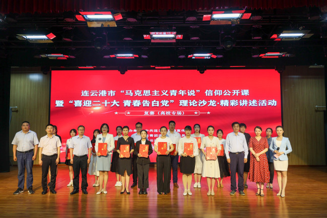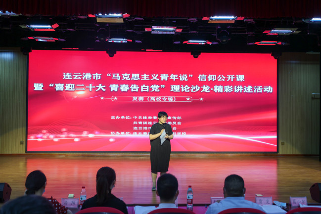 6月12日上午,由中共连云港市委宣传部、共青团连云港市委员会、连云港市广播电视台主办的“马克思主义青年说”信仰公开课暨“喜迎二十大 青春告白党”理论沙龙•精彩讲述活动首场复赛(高校专场)在我校举行。副校长顾强出席活动并为获奖选手颁奖。马克思主义学院副院长贾雯担任评委并作点评。