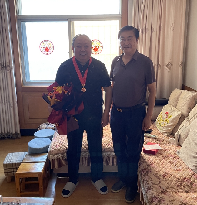 学校走访慰问2022年度“光荣在党50年”纪念章获得者。副校长顾强代表学校对获得纪念章的老党员们为学校发展所做的贡献表达了衷心的感谢,并为他们送上了鲜花、慰问金和真诚的祝福。