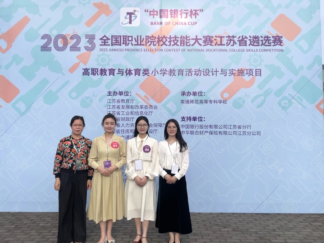 近日,2023年全国职业院校技能大赛江苏省遴选赛各赛项陆续落下帷幕,我校参加“小学教育活动设计与实施”教师赛、学生赛和“体育活动设计与实施”3个赛项的参赛队均以排名第二的总成绩获得了国赛参赛资格,7名师生将作为江苏省代表队成员参加2023年全国职业院校技能大赛。