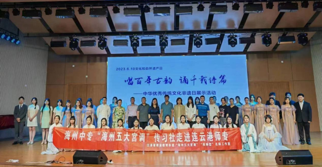 2023年6月10日是“文化和自然遗产日”,连云港师范高等专科学校文学院联合海州中等专业学校举办“唱百年古韵诵千载诗篇”中华优秀传统文化非遗日展示活动。本活动旨在进一步弘扬非遗文化,增强非物质文化遗产保护传承意识,推动优秀传统文化的普及和传承。