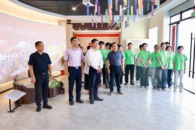连云港市委统战部副部长、连云港市民宗局局长刘峰等领导的陪同下,杨浩一行先后参观了“多元一体共创辉煌”“籽籽同心 共襄伟业”“榴连山海 共书华章”“手足相亲 共启新篇”等展区。通过参观文物、体感互动、观看投影等形式,进一步学习感悟各民族在历史长河中交往交流交融的生动历程,本地各民族群众守望相助、共筑家园的鲜活实践中华优秀传统文化作为民族团结精神纽带的深厚力量。